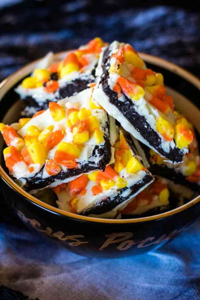4. Candy Corn Oreo Truffle Bark From Bread Booze Bacon